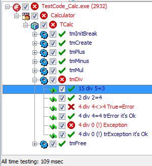 DblClick мышью по узлу запускает одиночный тест
